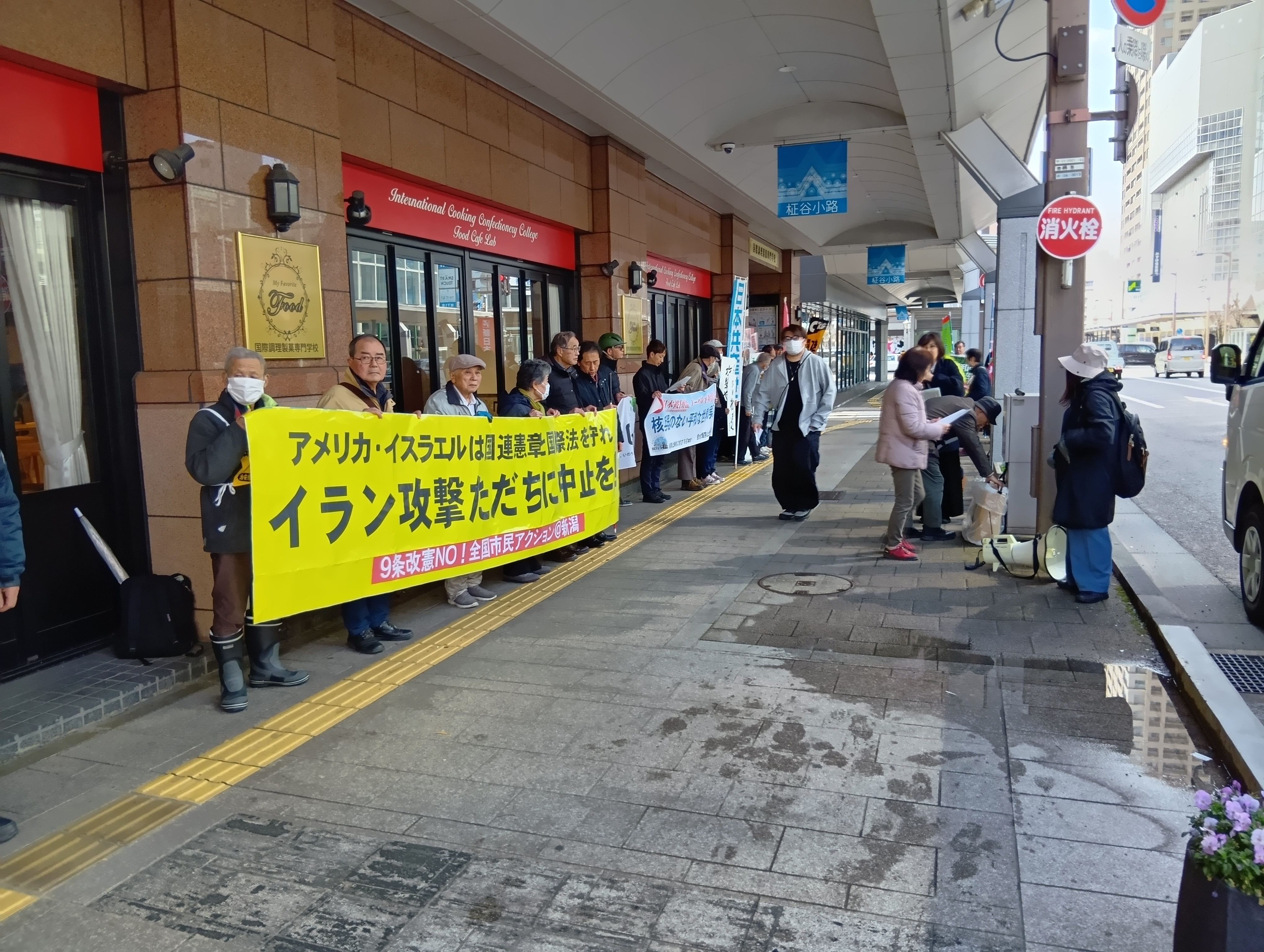 アメリカのイラン攻撃をただちに止める事、政府はアメリカの不法を指摘して止めさせることを求めて、古町で集会を開催しました。(2026/3/19)