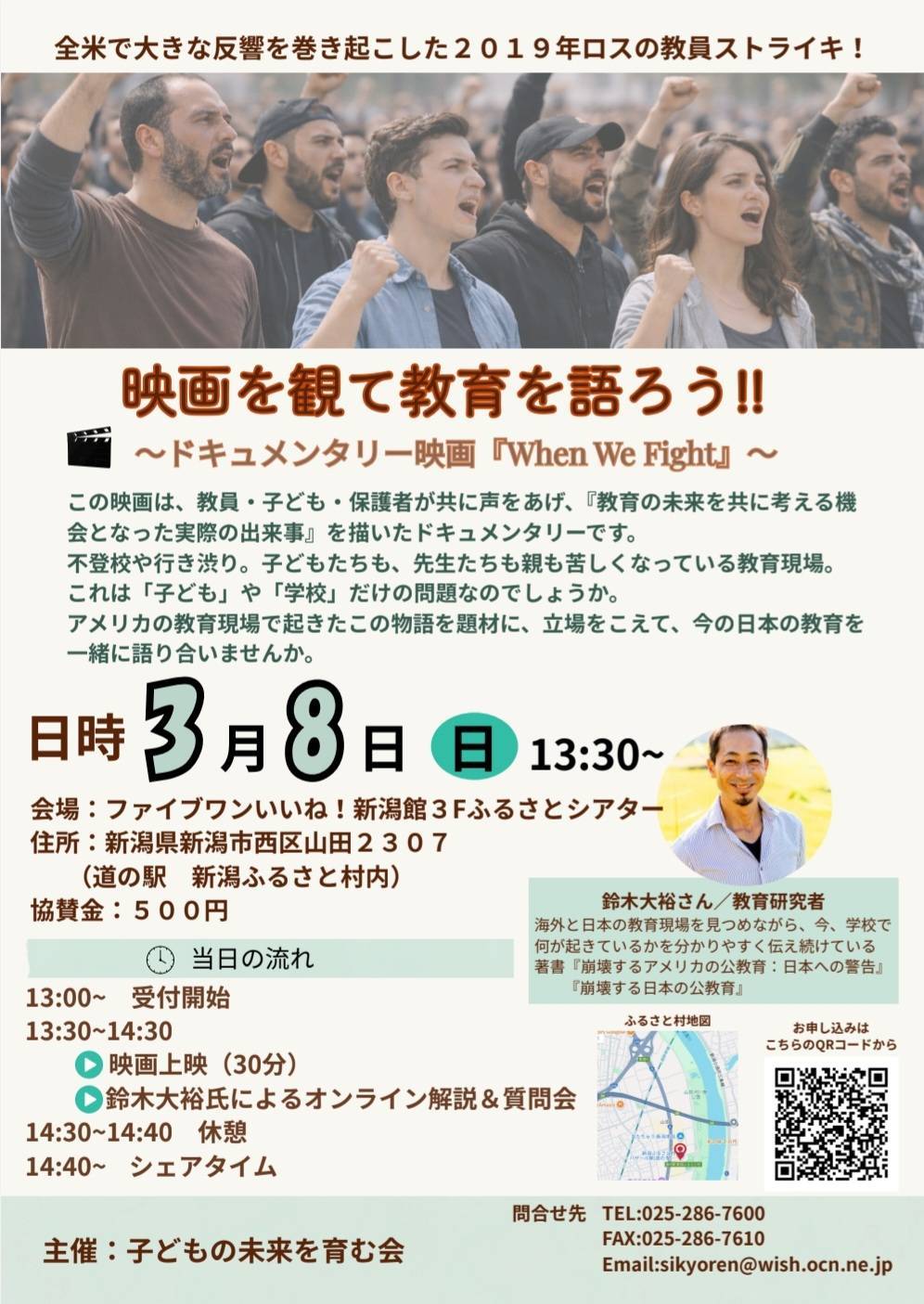 鈴木大裕講演会実行委員会は「子どもの未来を育む会」として、新潟の教育や学校について語り合う活動を続けることになりました。その最初のイベントとして、「映画を観て教育を語ろう! 『When We Fight ~ 2019年ロサンゼルス教育スト~』上映会」を開催します。多くのご参加をお待ちしております。